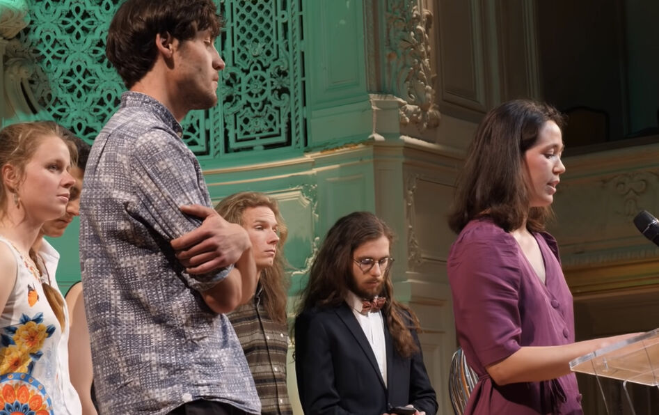 - Une voix dissonante. Tout était pourtant réuni pour que le moment soigneusement orchestré soit consensuel comme le sont d’ordinaire les cérémonies de remises de diplôme des grandes écoles : les sourires satisfaits des étudiants (mais aussi ceux de leurs parents et de leurs professeurs), les applaudissements nourris de congratulations et d’autosatisfaction, les élégantes tenues de soirée, les projecteurs illuminant la scène, la prestigieuse salle Gaveau rajeunie par le très dansant Wati by Night de Sexion d’Assaut en fond sonore. Il aura fallu un « groupe d’agros qui bifurquent » mené par la jeune diplômée Lola Keraron pour que la soirée prenne une autre tonalité. Mais quelle était la nature de leur prise de parole ?