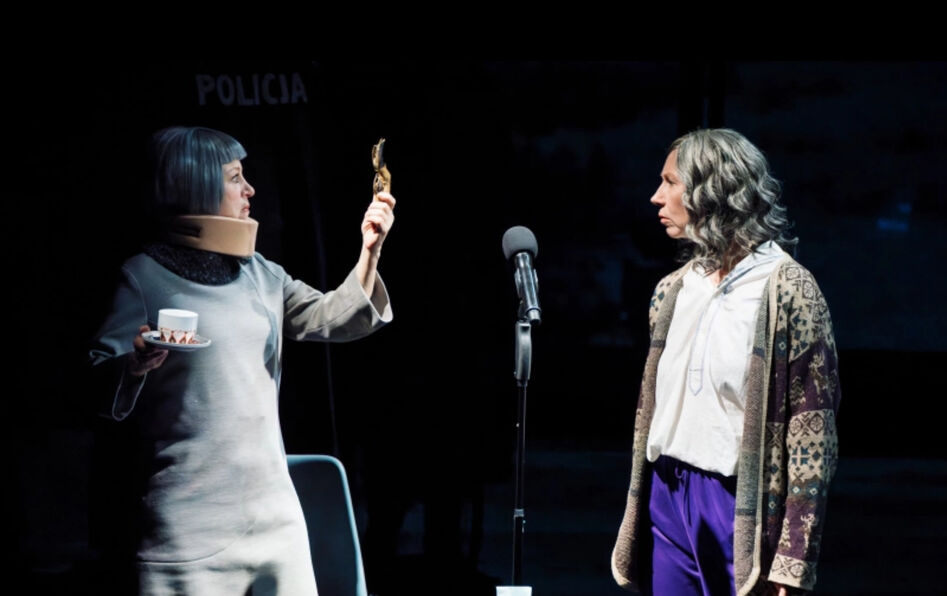 Le Tendre narrateur. Sous ce titre, l’autrice polonaise confie son ambition, à savoir “trouver les bases d’une nouvelle narration universelle, globale, qui n’exclurait aucune chose, plongerait ses racines dans la nature, serait riche de contextes mais qui, néanmoins, ferait sens. Une narration qui dépasserait l’incommensurabilité de notre ‘moi’ claquemuré, qui dévoilerait un champ plus vaste de la réalité et en ferait apparaître les corrélations, est-elle possible ?” Oui, et l’excellent metteur en scène Simon McBurney en fait la preuve ! La fable écologique qu’il monte suit le parcours de Janina, une “héroïne tragique” engagée pour la préservation de notre milieu. L’intrigue débute lorsqu’elle retrouve un voisin mort dans sa cuisine, étouffé par un os. Elle se poursuit comme un polar métaphysique, dont les animaux sont des acteurs à part entière. Il fallait tout le talent de Simon McBurney, sa maîtrise de la mise en scène et de la vidéo pour rendre l’admirable polyphonie du roman d’Olga Tokarczuk, et faire ainsi parler la nature.