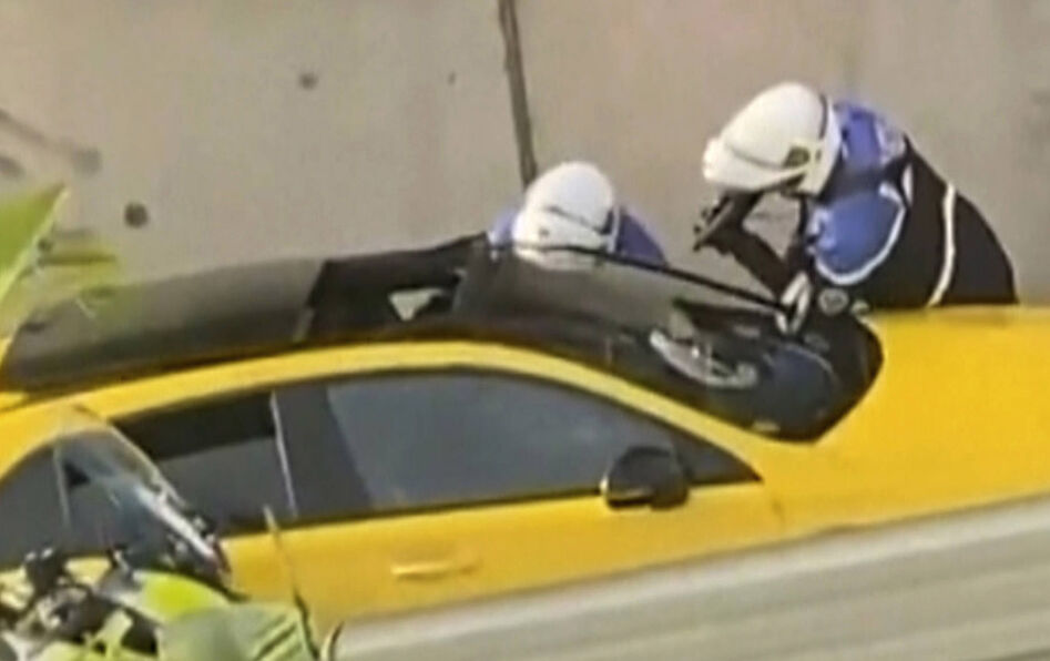 Nahel M., un jeune livreur de 17 ans inscrit en CAP électricité, a été tué le 27 juin 2023 lors d'un contrôle routier à Nanterre (92). Le policier, qui a pointé le “refus d’obtempérer” du conducteur, a initialement expliqué avoir fait feu pour stopper le véhicule qui lui fonçait dessus, arguant d’avoir agi dans le cadre de la légitime défense. Une version des faits contredite par une vidéo amateur devenue virale dont est tirée cette capture d’écran. L’auteur du tir a depuis été placé en garde à vue et une enquête a été ouverte par l’IGPN. © Ohana_FNG/AP/SIPA