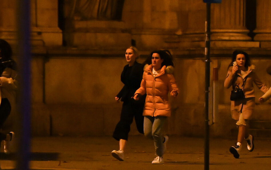 Des passantes fuient les lieux de l'attentat terroriste qui a frappé Vienne (Autriche) dans la nuit du 2 au 3 novembre. © Joe Klamar/AFP