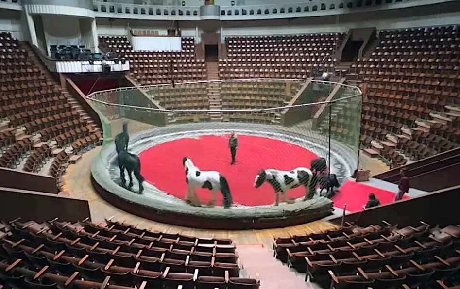Compagnon de circonstance des dresseurs, des acrobates, des équilibristes (tiens, il n’y a pas de clown…), le cinéaste réalise le plus beau film de guerre qui soit. Pas une épopée héroïque, comme celle que célèbre le lieu où se dresse le cirque, la place de la Victoire ornée de son obélisque que surmonte l’étoile rouge, mais un poème du quotidien. Celui de personnes qui résistent en faisant leur travail, tout simplement, avec des créatures dont ils se sentent responsables. Face à la machine infernale de la guerre et aux fantasmes historiques de Vladimir Poutine, il découvre des êtres qui ne parlent pas de politique, mais de viande à dénicher parmi les invendus, de maisons détruites aux alentours, de réouverture du lieu… un jour.