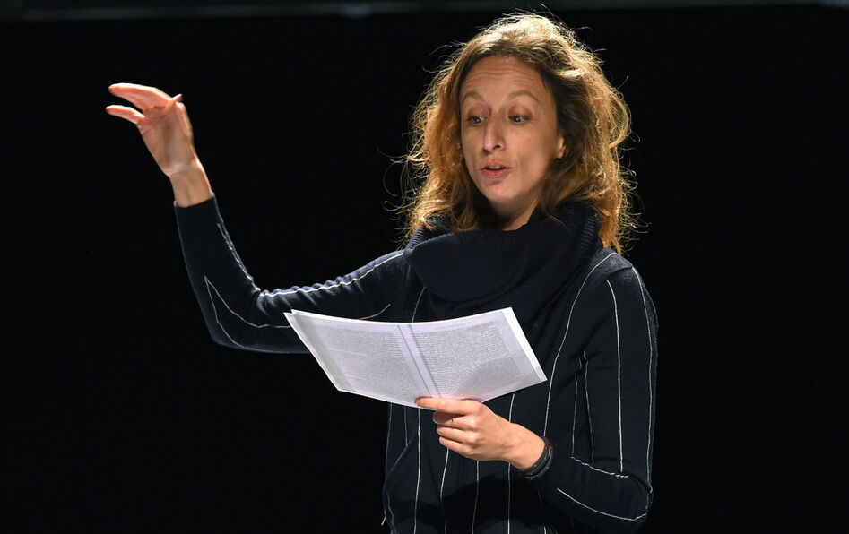 Caroline Arrouas interprète, seule sur scène, une professeure de lycée confronté à l’échec annoncé d’un de ses élèves. En tentant de faire dévier cette trajectoire quasi inéluctable, en imaginant mettre un grain de sable dans le processus de la reproduction sociale, dans le destin de cet adolescent, l’enseignante se trouve prise à son tour dans une mécanique qui la dépasse. Mais Caroline Arrouas parle aussi d’elle-même, en revenant sur sa trajectoire de comédienne, et de sa sœur (fictive ?) chanteuse d’opéra à Vienne (elle-même a été chanteuse). Guillermo Pisani intervient lui aussi au cours de la représention, comme pour en déjouer les codes et mieux les confondre. Il ne cesse ainsi d’opérer un retour réflexif sur le spectacle se faisant, de même que Bourdieu s’interrogeait toujours sur sa pratique. Lorsqu’il fut nommé professeur au Collège de France, en 1982, il prononça sa leçon inaugurale tout en déroulant une analyse sociologique de la leçon qu’il donnait. Avec le même procédé, Guillermo Pisani mêle les effets de réel à cette fiction, introduisant une dimension biographique, celle de l’histoire de la comédienne, au personnage sur scène. Il dramatise l’invitation de Bourdieu, formulée dans Les Règles de l’art, à « s’affranchir complètement de la vision “essentialiste” » de l’art, en menant une analyse historique du champ artistique compris comme « la condition du fonctionnement de l’économie des biens culturels ». Ce champ généralement implicite, Guillermo Pisani l’expose sur le plateau.