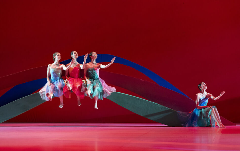 À 80 ans, Carolyn Carlson, qui se surnomme elle-même « la grand-mère de la danse contemporaine en France » reprend pour la sixième fois ce classique du ballet au XXe siècle. Il s’agit de donner vie, par le corps, aux « signes paysages » d’Olivier Debré. À partir des années 60, ce dernier s’éloigne en effet de la peinture historique et figurative de ses débuts pour exprimer, à travers d’immenses monochromes ponctués de taches de couleurs, une sorte d’émotion charnelle du paysage. Sur scène, la couleur, immobile sur le fond, s’incarne dans le corps des danseurs autant que dans leur costumes. Aussi, ce sont moins sept tableaux qui nous sont présentés que sept paysages émotionnels, comme autant de haikus dansés (également poétesse, Carlson entretient avec la calligraphie un rapport très proche, qui se ressent dans la gestuelle nette et précise de ses danseurs).