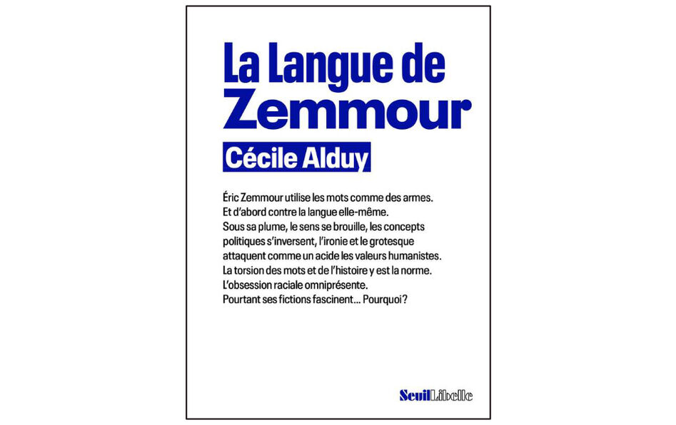 La Langue de Zemmour, de Cécile Alduy, paraît le 18 février prochain aux Éditions du Seuil, collection Libelle. 60 p., 4,50€, disponible ici.