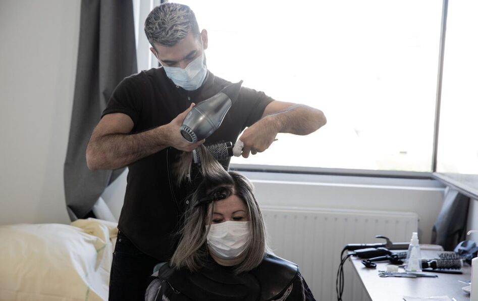 Séance avec un coiffeur pour le personnel soignant de l'unité de réanimation de l’hôpital La Pitié-Salpêtrière, à Paris. © ERIC DESSONS/JDD/SIPA
