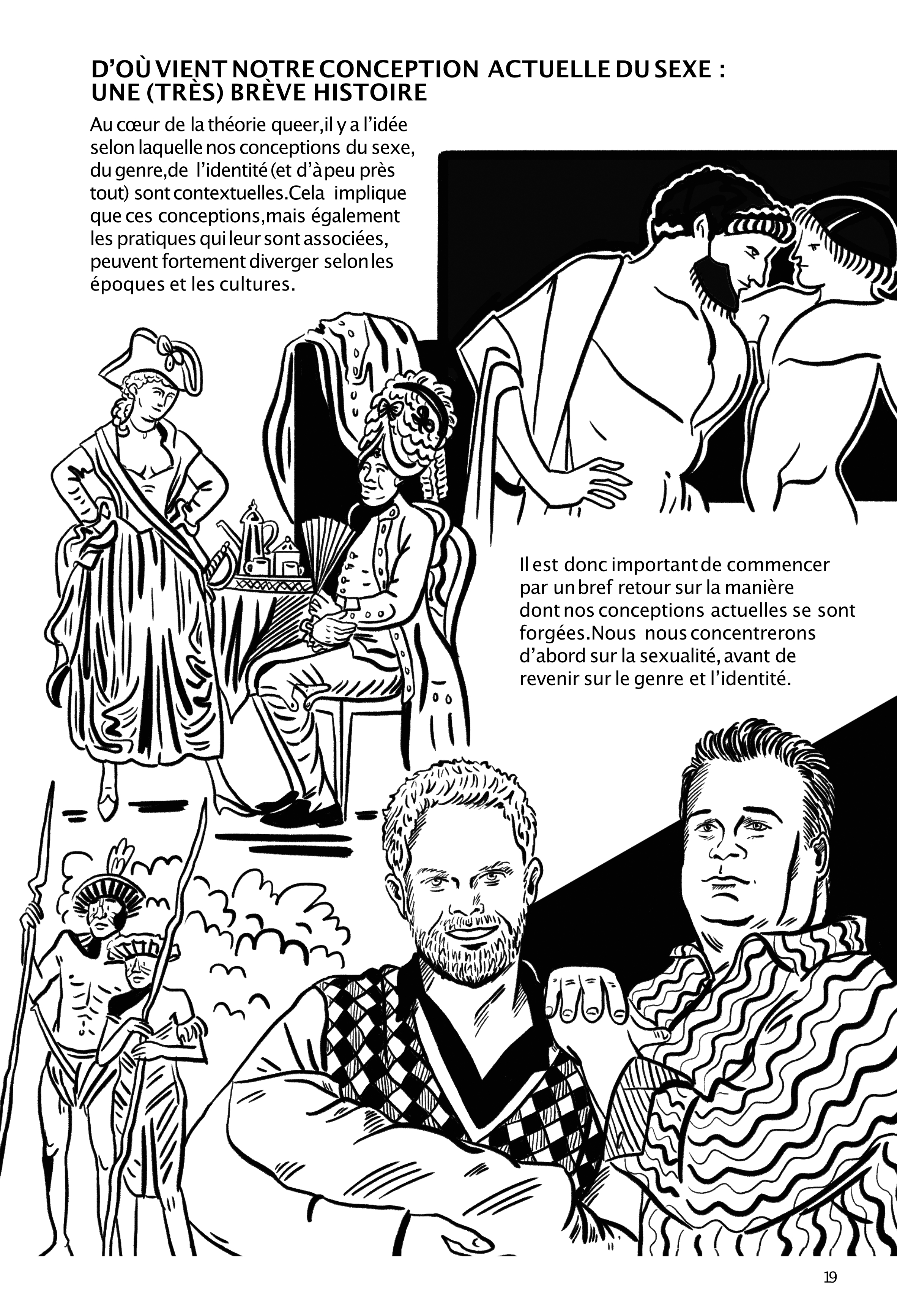 Un essai, proche dans la forme du roman graphique, Queer Theory, une histoire graphique (La Découverte, 2023), retrace l’histoire du mot queer et présente les travaux des universitaires à l’origine d’une théorie visant à démanteler les binarismes en tout genre. Un livre qui a le queer solide !