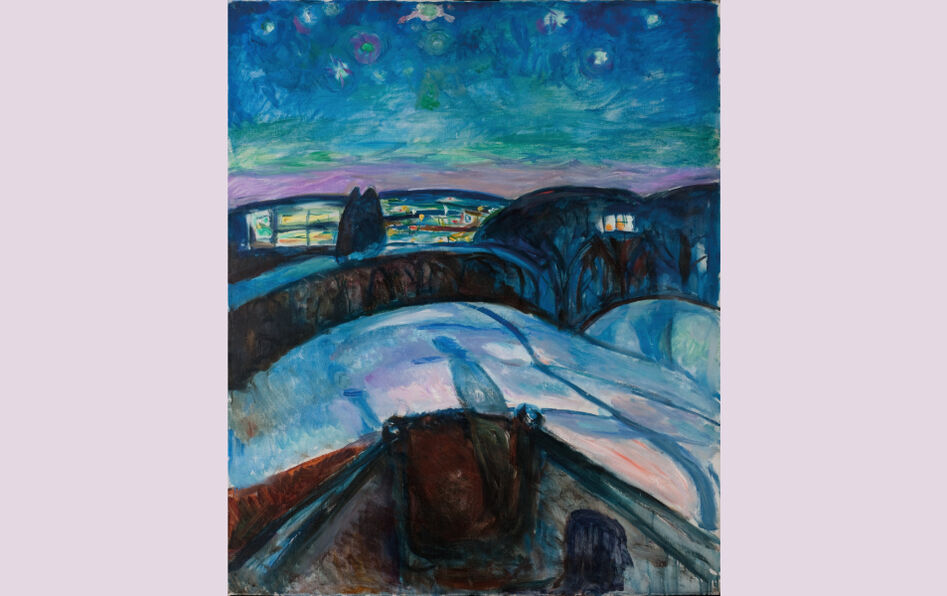 D’Edvard Munch, on connaît la désolation. L’importante rétrospective que lui consacre le musée d’Orsay en révèle aussi la face lumineuse – plutôt, elle insiste sur l’ambivalence de l’artiste expressionniste norvégien. Plus qu’un peintre de l’angoisse, l’auteur du célèbre Cri (1893) est en effet le représentant d’une philosophie existentielle, considérant la vie comme une alternance de joies et de peines, de souffrance et d’amour, et qui contemple la mort au cœur de tout. Il imagine ainsi la lutte d’Alpha et Oméga, deux puissances contradictoires et complémentaires, ou figure le Métabolisme sous les traits d’Adam et Ève. « Je ne crois pas à l’art dont l’expression n’est pas contrainte par le besoin qu’a l’homme d’ouvrir son cœur, écrit-il. Tout art – littérature comme musique – doit être produit avec notre cœur sanguinolent – l’art est notre cœur sanguinolent. » Les représentations solaires d’hommes nus rivalisent ainsi avec les atmosphères mélancoliques. Les baisers se font inquiétants ; l’amour devient « vampire » quand les amants fusionnent pour ne plus former qu’un. Lui-même se figure nu, l’œil perplexe, dans un étrange et lumineux Autoportrait en enfer. Contemporain de Friedrich Nietzsche (dont il réalise le portrait), Munch manifeste une forme de vitalisme, ramenant la vie (et son œuvre, qui en est une interprétation) à un « éternel retour », c’est-à-dire au cycle qu’il s’agit d’apprécier comme un renouveau. Les motifs se répètent et se transforment dans la Frise de la vie, composée de séries que le peintre complète entre 1893 et 1918. Son œuvre repose sur ces variations dans les motifs : la lumière et la nuit, la jeunesse et la mort, le couple et la séparation… Le Danois Søren Kierkegaard distingue, lui, la répétition « en arrière », à l’identique et mortifère, de la reprise « en avant », à travers laquelle on affirme une existence. Cette dimension créatrice de la reprise prend pour modèle, chez Munch, la génération de la nature, dans laquelle l’homme se fond. « L’effet d’une œuvre d’art dépend de ce qu’elle dit – ce qu’on veut, c’est un morceau de la nature – la racine carrée de la nature », note l’artiste. Empruntant à une croyance panthéiste – « Tout est en nous – et nous sommes en tout » –, Munch ressent « un grand cri infini à travers la nature ». Ce sentiment d’unité, il le transcrit dans des toiles comme le Désespoir, où le ciel menaçant et voluptueux enserre une silhouette pensive. Et, dans la Nuit étoilée (photo), l’une des dernières toiles présentées dans l’exposition, l’homme n’est finalement plus qu’une ombre fondue dans le clair-obscur d’un paysage… humain, trop humain.