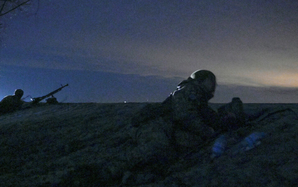 Demydivka (Ukraine), le 10 mars 2022. Dans une tranchée, un membre des forces de défense ukrainiennes cherche à se protéger d’un tir d’hélicoptère russe. © Maksim Levin/Reuters