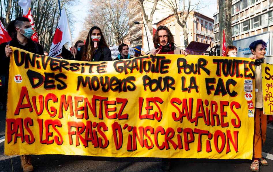 “Macron voit l’enseignement supérieur comme une manne financière pour les banques […] Pour se justifier, il prétend que notre système est ‘beaucoup plus financé par l’argent public que partout dans le monde’, mais c’est faux !”