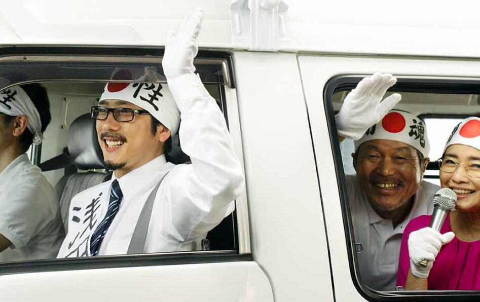 « On dirait les photos d’une colonie de vacances ! » s’exclame le personnage du photographe Masashi Asada (interprété par Kazunari Ninomiya) en contemplant les photos récupérées après le tsunami ayant frappé la région du Tōhoku, en 2011. Lorsqu’on voit ces milliers de photos de famille côte à côte, on a en effet le sentiment d’observer les clichés d’un grand voyage scolaire intergénérationnel. Hélas ! la situation est plus dramatique. Si les photos sont ainsi exposées dans le film La Famille Asada, c’est dans le but de les restituer à leurs propriétaires, victimes du cataclysme qui a également provoqué la catastrophe nucléaire de Fukushima. Le photographe est particulièrement touché par ces clichés recouverts de terre, parce qu’il est lui-même spécialiste des photos de famille, à commencer par celles de la sienne propre qu’il fait poser dans de fausses situations professionnelles rocambolesques :  pompiers, cuisiniers, yakuzas…