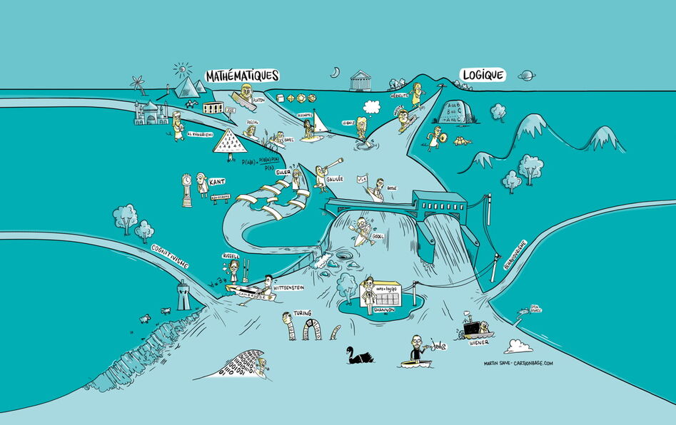 Comme le laisse entrevoir la carte, l’histoire de l’informatique peut être décrite comme le rêve de réunir ces deux branches cousines, mathématiques et logique donc. Ce rêve a été formulé pour la première fois au XIIIe siècle par un certain Raymond Lulle, théologien et missionnaire majorquin, mais il est surtout devenu celui de Gottfried Wilhelm Leibniz. Le philosophe allemand se demande pourquoi ces deux disciplines évoluent en parallèle depuis l’Antiquité, alors qu’elles ambitionnent apparemment la même chose. Tant les mathématiciens que les logiciens cherchent comment établir des vérités incontestables, ils luttent contre les erreurs de raisonnement et veulent établir les lois d’une pensée correcte.
