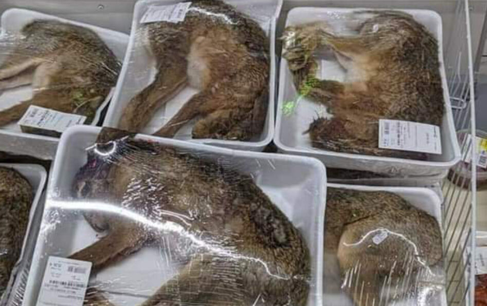 Oui, je pense que nous nous sommes tous plus ou moins accoutumés, par une longue imprégnation culturelle, à regarder ailleurs, à compartimenter notre rapport aux animaux. Cela me fait penser au fameux lapin-canard de Jastrow. La même figure peut se voir soit comme un lapin, soit comme un canard. Or ce que souligne Wittgenstein, c’est qu’il n’y a pas d’entre-deux : c’est soit l’un, soit l’autre, alternativement. Eh bien là, dans ce supermarché, on est au milieu. On est mis en face de corps presque vivants, presque palpitants, mais présentés comme de la viande sous plastique, prête à être consommée. C’est d’autant plus intéressant qu’on a peu l’habitude, il faut bien le dire, de présenter ainsi le gibier. C’est presque le plus frappant : une part de nature libre et sauvage, mais conditionnée industriellement. C’est donc un dispositif étonnamment efficace, presque « pédagogique », qui nous rappelle que derrière la viande, des animaux bien vivants ont été mis à mort. Je ne pense pas que c’était l’intention des supermarchés Leclerc (qui pensaient sans doute davantage aux amateurs de gibier), mais par un étrange retournement des choses, on a affaire à un exercice de lucidité, digne d’une performance militante ou d’un happening animaliste.