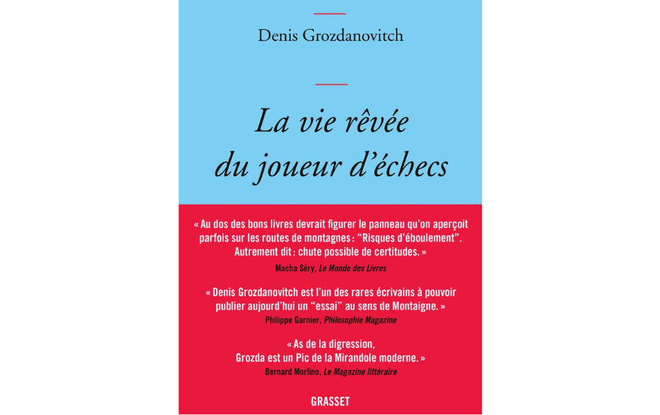 La Vie rêvée du joueur d’échecs, de Denis Grozdanovitch, vient de paraître chez Grasset. 208 p., 19€ (tirage physique) / 13,99€ (édition numérique), disponible ici.