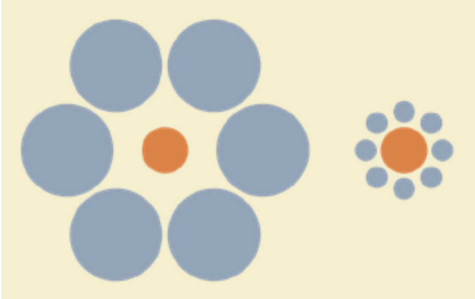 Comparez les deux disques orange ci-dessous : lequel est le plus grand ?
