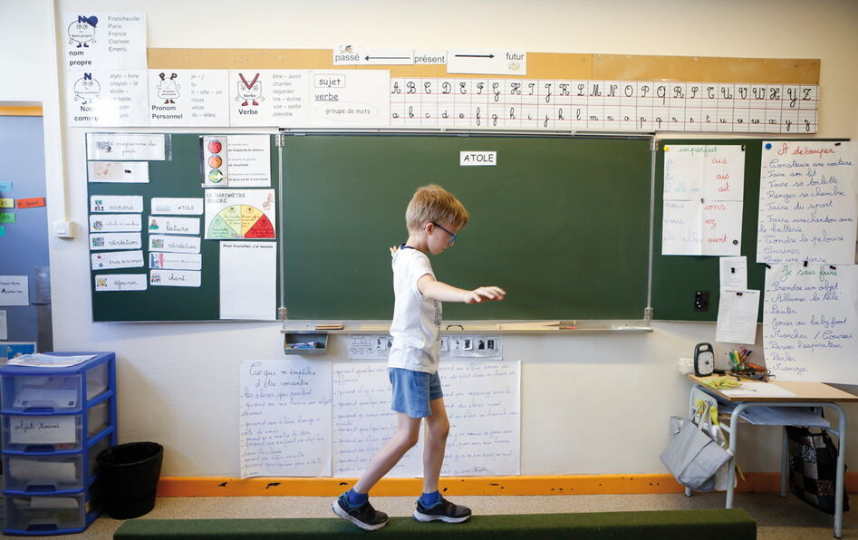À l’école du Bourg de Francheville (Rhône), les 28 élèves de la classe de CE2 de Stéphanie Léautier-Massire se racontent de drôles d’histoires : il est question de plusieurs héros, les Minimoi et les Maximoi, qui doivent s’organiser entre eux pour mener à bien leur mission, d’une poutre dont il ne faut surtout pas tomber, et de neurones aimants. Après leur avoir distribué ce qu’elle appelle une « grande consigne » (par exemple : « Avant de commencer le calcul mental sur le fichier, je dois… »), l’enseignante invite les enfants à travailler par petits groupes pour décomposer cette grande tâche en petites consignes implicites. Comme dans un jeu de rôle, chaque groupe d’élèves passe au tableau afin de partager ses résultats. Victoria incarne Maximoi et rappelle la grande consigne, suivie de ses camarades Olivia, Noa et Ethan, alias les Minimoi, qui la découpent en « sortir le fichier du casier », « sortir mon stylo », « ouvrir le cahier à la bonne page », « lire l’énoncé ». L’exercice semble bien rodé. Ce qui n’empêche pas Stéphanie Léautier-Massire de devoir de temps à autre s’assurer que l’attention de ses élèves ne se dissipe pas en lançant un « 1, 2, 3 contact ! », afin que tout le monde tourne bien le regard vers elle. À celui qui fait mine de trifouiller dans ses affaires en regardant ailleurs, elle lance : « Attention ! Tu es en train de tomber de ta poutre et de passer en mode marionnette ! » La poutre symbolise ici la concentration nécessaire à l’exercice, quand la marionnette vaut pour l’élève dont l’attention divague au gré de micro-événements – le voisin qui raconte une bonne blague, une mouche qui vole. Ses « neurones aimants » se sont fixés sur autre chose que le cours.
