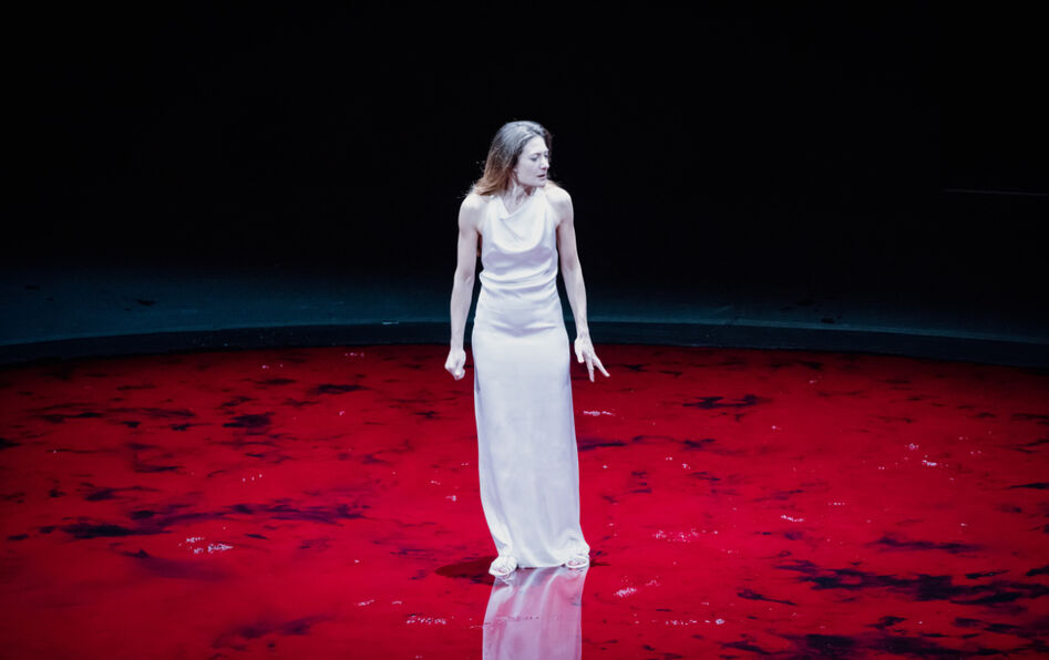 “Faut-il qu’un si grand cœur montre tant de faiblesse ?” Bonne question d’Andromaque, à laquelle Stéphane Braunschweig répond avec brio sur la scène de l’Odéon-Théâtre de l’Europe, en adaptant Racine pour une troisième fois après avoir monté Britannicus et Iphigénie. Ici, tout tient, l’amour et la haine, le sang et les larmes, dans un cercle dessiné au sol, une mare rouge sur une scène noire. Les protagonistes s’y tiennent tantôt à la lisière, tantôt à l’épicentre, quand l’action les y pousse. Avec cette économie de moyens mais une distribution remarquable, il aiguise l’actualité de la pièce, affute les dialogues et ravive la tragédie. Elle tient en une ligne : Oreste (fils du grec Agamemnon) aime Hermione (fille d’Hélène), qui aime Pyrrhus (fils d’Achille), qui aime Andromaque, veuve éplorée du héros troyen Hector. Amours insolubles, avenir condamné.