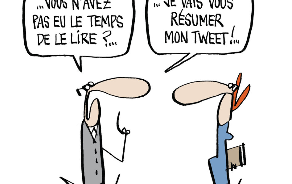 Nous vivons sous la dictature de l’urgence. Avec Internet et les nouvelles technologies, l’homme moderne est toujours plus pressé, réactif. Cette accélération du temps a une autre conséquence, moins évoquée : le règne du court terme entraîne celui du format court. Nous avons tendance à nous exprimer de façon toujours plus concise, à raccourcir toujours davantage nos échanges et notre pensée. Tweets, SMS, e-mails, mais aussi séries télé de deux minutes et demie (Bref, sur Canal+) ou conférences TED (Technology Entertainment Design) de dix-huit minutes chrono, règne du « pitch » à la télé (présenter un produit culturel en un claquement de phrases)… Partout, il faut faire court et concentré !