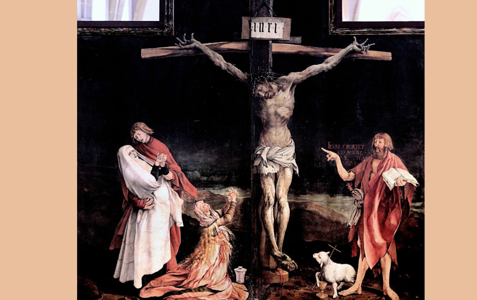 - Canetti note lui aussi la singularité de cette crucifixion d’Issenheim : « L’état de ce corps m’apparaissait vrai, et devant cette vérité je prenais conscience de ce qui m’avait gêné dans les crucifixions : leur beauté, la sublimation qui s’y manifeste. La sublimation est le fait des concerts d’ange, et non de la crucifixion. » Le retable donne à voir l’horreur du mal dans sa nudité. « Ce dont on serait détourné avec horreur dans la réalité, on pouvait encore le saisir dans ce tableau », « souvenir des choses horribles que les hommes s’infligent les uns aux autres. » Le retable n’est pas seulement un témoignage, mais un avertissement. La « tâche essentielle » de l’art n’est pas « de purifier, de consoler, de faire comme si tout allait bien se terminer car les choses ne se terminent pas bien ». La vérité du retable est celle de la « réalité toujours égale à elle-même et qu’il faut toujours garder à l’esprit. Toute l’horreur qui est à notre porte est anticipée ici. Le doigt de saint Jean, un doigt immense la désigne. Cela est, cela sera de nouveau. »