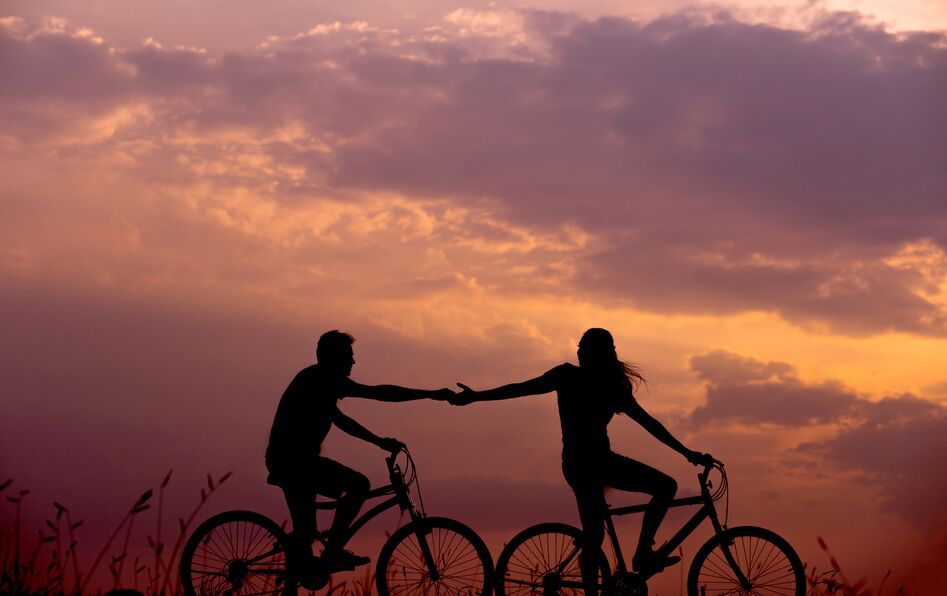 Deux personnes font du vélo au crépuscule. © Everton Vila/Unsplash