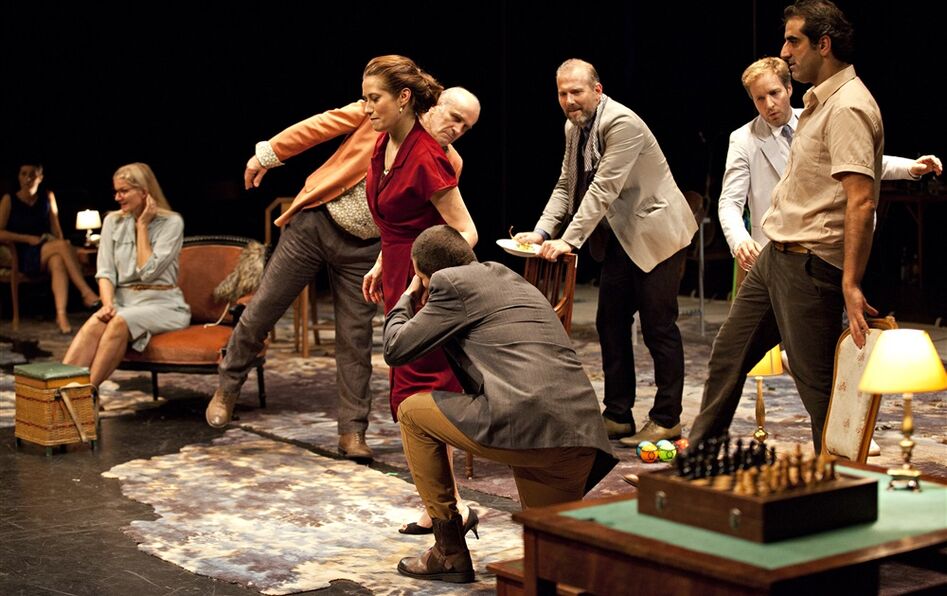 Ce sentiment de désanchantement, de duperie et de séduction partagées, le collectif Les Possédés en font un monument de théâtre. Dans un décor fragile, posé sur une toile peinte qui fera office tantôt de sol tantôt de paroi, de papier peint et d’horizon d'illusion, la douzaine de comédiens virevoltent, emportés par la parlotte dans un cosmos foutraque, divaguent de siège en tabouret, de tabouret en chaise longue, de chaise longue en causeuse.