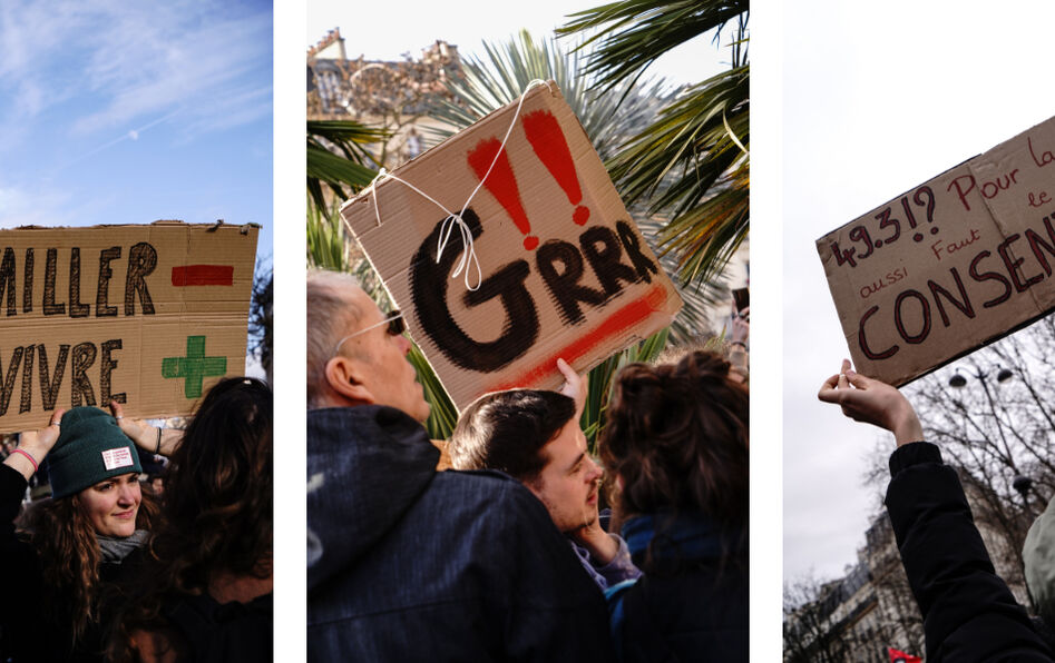 À l’appel de plusieurs organisations syndicales, des centaines de milliers de personnes ont manifesté partout en France, mardi 31 janvier, contre le projet de loi de réforme des retraites. Dans le cortège parisien, slogans et pancartes portaient des revendications parfois philosophiques. Portfolio.