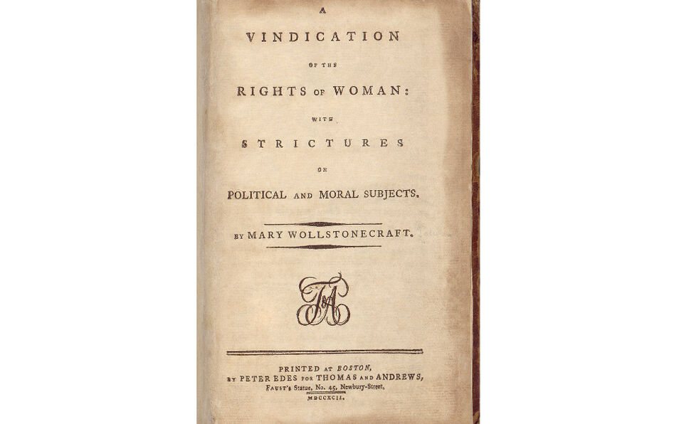 Première page de la première édition américaine de la “Défense des droits de la femme”, 1792. © Domaine public