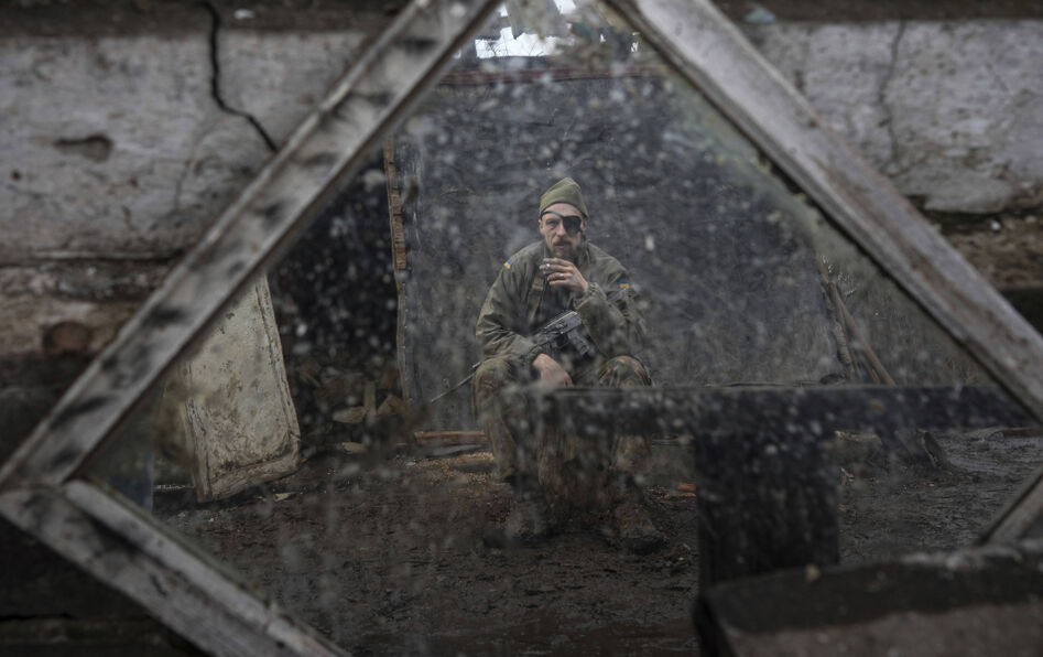 Un soldat ukrainien près de Zolote (Ukraine), le 19 février 2022. © Evgeniy Maloletka/AP/SIPA