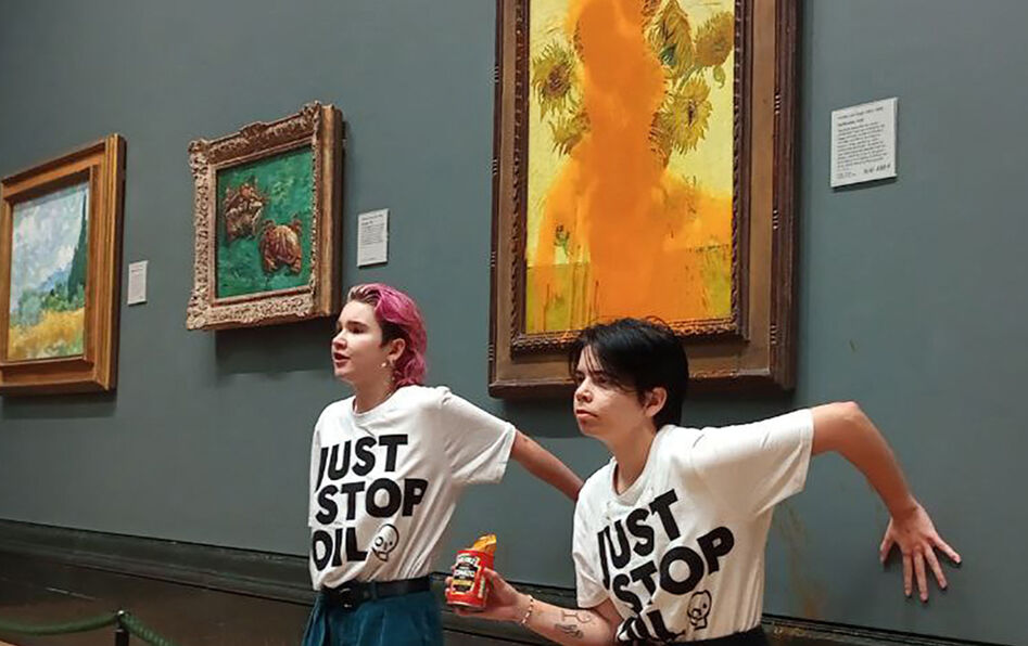 Le 14 octobre dernier à la National Gallery de Londres, les Tournesols de Van Gogh ont été aspergés de soupe à la tomate par des militants écologistes. Neuf jours plus tard, c’est un tableau de Monet – lui aussi recouvert d’une vitre de protection –, Les Meules, qui a été arrosé de purée de pommes de terre au musée Barberini de Potsdam, en Allemagne, pour les mêmes raisons. Souvenons de La Joconde, entartée à Paris au mois de mai. Un homme avait alors déclaré : « Il y a des gens qui sont en train de détruire la terre, pensez-y. Tous les artistes, pensez à la terre. C’est pour ça que j’ai fait ça. » D’autres cas similaires, observés à Florence et ailleurs, montrent que si les œuvres changent, la manière de procéder est toujours à peu près la même. Mais pourquoi les militants écologistes choisissent-ils les musées pour faire leurs happenings et porter leurs revendications ?