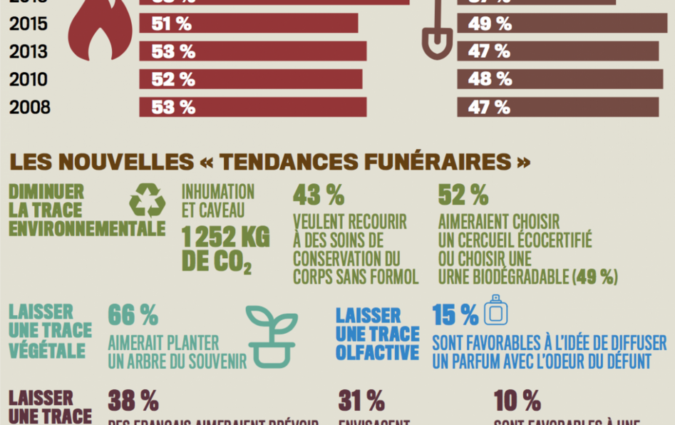 Quelque chose plutôt que rien ! À l’heure de la grande recomposition des usages funéraires, qui voit la crémation prendre peu à peu le dessus sur l’inhumation, et les modes alternatifs, écologiques ou numériques se développer, la volonté manifeste de réduire la place qu’occupent les morts n’empêche pas que subsiste le souci d’en préserver une trace, si subtile soit-elle. Selon les dernières enquêtes publiées par les services funéraires de la Ville de Paris, 42 % des Français indiquent « ne pas vouloir laisser de traces sur Terre » pour « ne pas prendre de place ». C’est la raison pour laquelle l’incinération est de plus en plus prisée : elle réduit la place occupée par le corps des morts, mais aussi leur empreinte environnementale. Un enterrement avec construction d’un caveau équivaut, en effet, en terme d’empreinte carbone, à cinq crémations. Cependant, au-delà de cette alternative, d’autres usages s’inventent qui dessinent la recherche d’une empreinte plus souple. La trace « végétale », avec l’humusation (encore interdite en France), équivaut à un retour littéral à la terre par une transformation du corps en « compost ». Mais, toujours selon la même enquête, on voit aussi monter la digitalisation des traces avec « des murs numériques du souvenir », tandis que certains pensent même à une trace « olfactive » qui permettrait de sentir l’odeur du défunt.