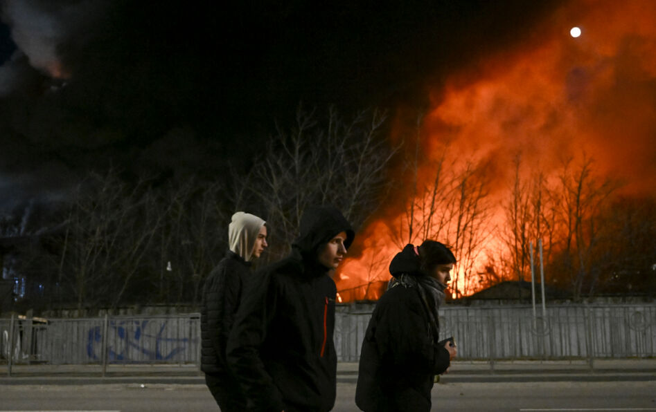 Après un bombardement à Kiev (Ukraine), le 17 mars 2022. © Aris Messinis/AFP