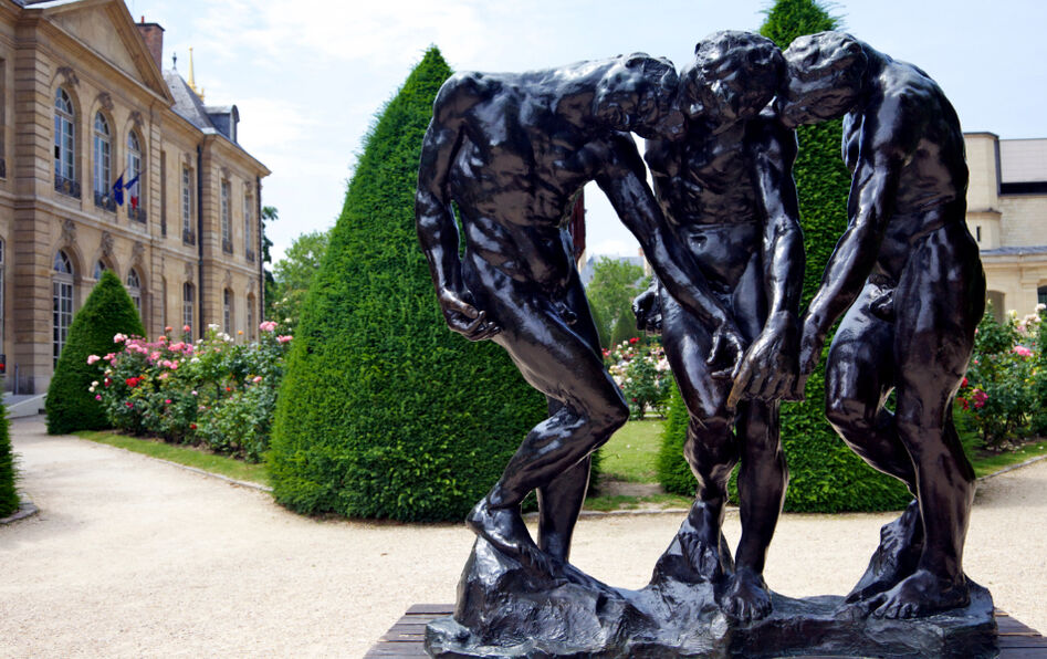 Auguste Rodin, “Les Trois Ombres” (1902-1904), sculpture en bronze appartenant à l’ensemble “La Porte de l’enfer”, dans les jardins du musée Rodin. © Peter Barritt/AFP