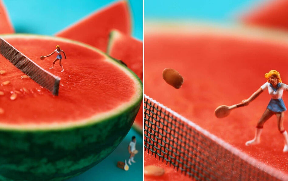 L’infiniment petit a désormais un art consacré : le #miniatureart, qui fait fureur sur les réseaux sociaux. Un terrain de tennis campé sur un pamplemousse coupé en deux, deux personnages qui bronzent sur une île flottante entourée d’une mer de crème anglaise… L’exposition « Small Is Beautiful », qui regroupe 126 œuvres observables à la loupe, joue sur un sentiment d’émerveillement vieux comme le monde : celui que l’on ressent face à l’extrême petitesse. De l’enfant qui observe les fourmis à l’adulte qui regarde dans un microscope, on a tous ressenti ce léger vertige face au ridiculement petit, à l’infinitésimal.