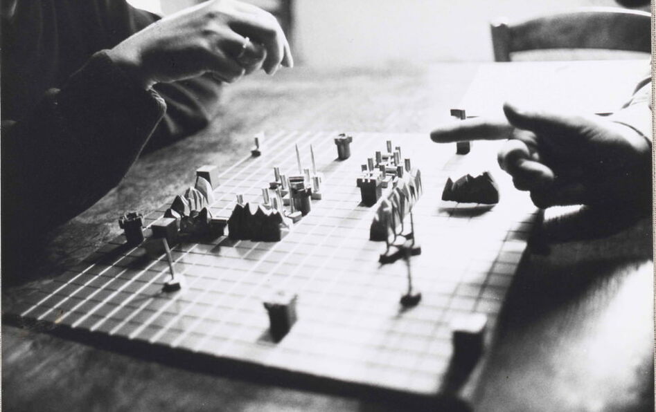 Alice et Guy Debord jouant au Jeu de la Guerre, août 1987. Photographie de Jeanne Cornet © BnF, dpt. Manuscrits, fonds Guy Debord