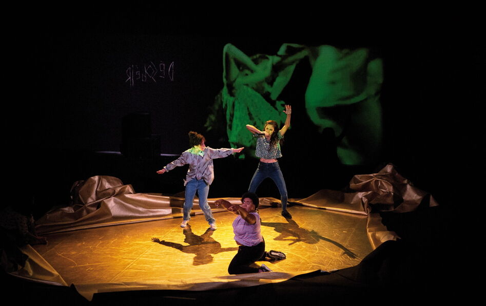 Graver « désobéir » en lettres capitales sur un mur noir, prendre la pose avec fierté, puis un selfie devant le graffiti. La pièce de Julie Berès débute par ce mot d’ordre, qui définit le parcours de quatre femmes dans leur propre rôle : Séphora Pondi, Hatice Ôzer, Lou-Adriana Bouziouane et Charmine Fariborzi. Deuxième ou troisième générations issues de l’immigration, elles ont dû trouver leur voix contre la tradition et la famille, d’une part, et contre les jugements et les clichés, de l’autre. Elles ont appris à dire non contre la société, tout contre, et à tracer leur voie. « Comment s’inventer soi-même ? ». Cette question a guidé Julie Berès, Kevin Keiss et Alice Zeniter dans l’écriture du spectacle, créé en 2017. Déployant ce qu’ils appellent un « théâtre de la capacité », à partir du recueil et de l’agencement de témoignages, montés sans fioritures, ils entendent brosser un « tableau sensible de la réalité » et offrir, par l’ébranlement des corps et l’exposition d’une parole singulière, un lieu où faire entendre les subjectivités avec une ambition politique. Car donner à chacun la possibilité d’affirmer sa voix est pour le philosophe américain Emerson l’un des enjeux de la démocratie. Cette possibilité repose sur la confiance en soi, la capacité de chacun à forger son propre jugement, à avoir raison seul contre tous et à s’élever par l’affirmation de soi. Il n’est qu’à voir l’assurance de ces comédiennes, leur acuité et leur talent déployé sur ce plateau nu, pour s’en convaincre.