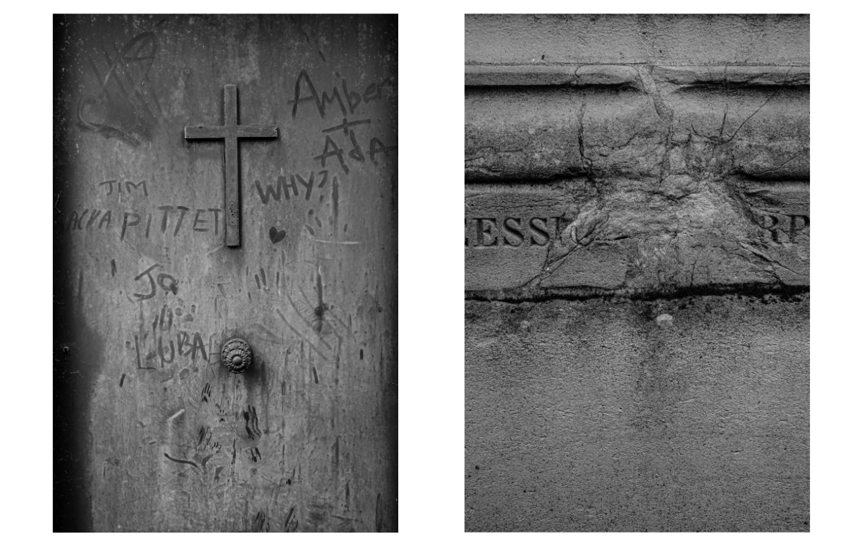 Le boulevard de Clichy est fait de lignes parallèles vouées à ne jamais se rencontrer, par définition. Encore que. Au bout de l’avenue Rachel, perpendiculaire au boulevard, à quelques mètres des bars et des sex-shops, se trouve l’entrée du cimetière de Montmartre, l’un des célèbres cimetières-jardins parisiens ouverts au début du XIXe siècle. Les tombes y ressemblent parfois à des monuments destinés à la postérité. Mais le temps y est plus que jamais à l’œuvre : anfractuosités dans la pierre, fissures, brisures, tâches, traces, graffitis et inscriptions parfois mystérieuses témoignent de son passage, alors qu’il s’est définitivement figé pour les morts. Comme les mannequins en vitrine, la matière inanimée paraît vivante, puisqu’elle peut afficher ses blessures. Elle contredit ainsi parfois la prétention des hommes, comme cette « concession à perpétuité » à moitié effacée. Il n’est d’ailleurs désormais quasiment plus possible d’acquérir de telles concessions dans les cimetières parisiens, faute de place.