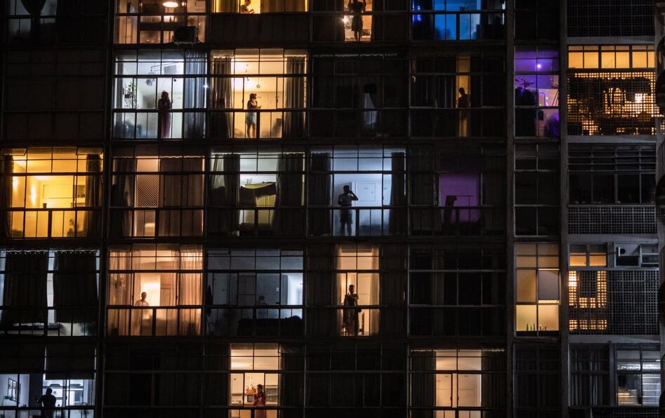 Vue d’un immeuble à São Paulo (Brésil), le 19 mars 2020, où les résidents ne sortent plus à cause du Covid-19. © Victor Moriyama/The New York Times/Redux/Réa