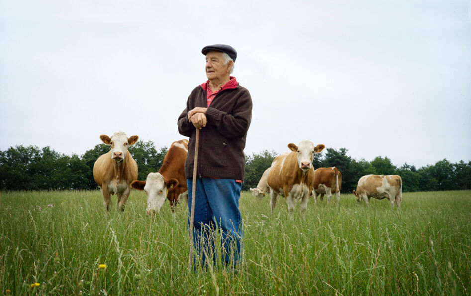 À 87 ans, Louis Raynaldy se porte comme un charme. Il cultive son jardin, conduit sa voiture et s’inquiète du chaos boursier. Mais lorsqu’il se met à raconter son existence, c’est comme s’il ressuscitait un passé presque légendaire. Il est né dans cette maison construite par son père. Ses ascendants étaient également d’ici et paysans. La tradition familiale voulait que le fils aîné devienne ecclésiastique et que le second reprenne l’exploitation. Ainsi Louis Raynaldy, comme son père, a eu un frère religieux. Quant à lui, il n’avait pas de vocation précise. « J’ai fait un peu de collège, raconte-t-il. La guerre a éclaté, le collège a été fermé et je suis revenu à la maison. Mes parents m’ont dit : “tu nous aideras”, et ça s’est passé comme ça. » Son enfance ? « Un peu de joie », résume-t-il. Les travaux et les jours : « On faisait des veillées, on fabriquait des paniers avec du bois de châtaignier, on apprenait à faire du cidre, on ramassait les champignons, on épluchait les châtaignes, on coupait les coulées de betterave… ensuite on allait manger une fouace [la brioche de la région]. On était plus en contact avec les autres que maintenant. » L’exploitation, dans cette zone montagneuse au sol ingrat, était modeste : six vaches, une paire de bœufs pour travailler, un peu de blé pour le pain et de seigle pour nourrir les cochons… Les parents de Louis Raynaldy « étaient pauvres, mais ils étaient heureux ». Ils vivaient presque en autarcie, n’achetant que le sucre et le café. « Mais ils aimaient les réunions familiales, les foires de la région où l’on rencontre toutes les générations », se rappelle leur fils.