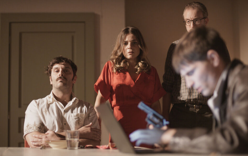 Grand dadais a priori sympathique à l’air ahuri, au phrasé et à l’accent indéterminés (mi-nordiste, mi-dauphinois, mi-francilien), Yannick (Raphaël Quenard) est gardien de nuit dans un parking à Melun – « dans le 77 », comme il le précise. Ce soir, il a posé un congé pour se rendre au théâtre, où l’on joue un vaudeville poussif, Le Cocu. Au bout de quelques minutes d’une représentation laborieuse où le jeu outré rivalise avec les poncifs du genre, ne pouvant plus y tenir, il se lève et interrompt la pièce : « J’ai du mal accepter qu’un spectacle qui s’est [sic] censé me remonter le moral, ça me fait l’effet inverse ! », se justifie-t-il avec aplomb. Incrédules, les acteurs sur scène (Pio Marmaï, Blanche Gardin et Sébastien Chassagne) ne s’en laissent pas compter et, après lui avoir expliqué que ce qu’il vient de faire ne se fait pas du tout, lui intiment de quitter les lieux. L’impétrant s’exécute. Néanmoins, entendant des rires en provenance de la salle au moment où il récupère son blouson au vestiaire et comprenant que l’on se moque de lui, il fait son retour, cette fois l’arme au poing. S’ensuit une prise d’otage du public et des comédiens, auxquels Yannick ordonne de se tenir prêts à jouer la pièce qu’il va entreprendre de réécrire.